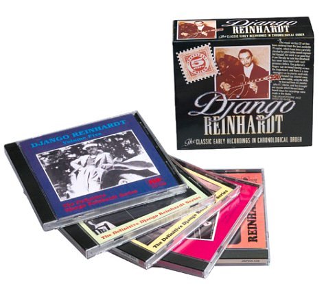This wonderful five-disc box is an indispensable collection of prewar, prebop jazz that belongs in the company of your finest Louis Armstrong, Duke Ellington, Count Basie, and Benny Goodman sets. Technically, this isn't a true box set--it merely collects five single-disc compilations under one slipcase--but it is infinitely rewarding nonetheless. Disheartened by what he thought were sonically subpar Reinhardt collections, Ted Kendall undertook an ambitious mission to find the best original sources for this classic material and then meticulously remastered them. He wisely opted to leave in some of the surface noise to maintain the clarity and integrity of the music. And what glorious, jubilant music it is! Dating to the very first Quintet of the Hot Club of France sessions in September 1934 (before they'd even established that moniker), the collection includes all the landmark recordings Reinhardt made for Ultraphone, Decca (its English and French labels), and HMV up through the Quintet's 1939 breakup on the eve of World War II. Reinhardt's guitar work is spirited and adventurous throughout--lightning-quick runs, insistent rhythm work, and hybrid "riffs" that seem to split the difference. Nearly all the cuts feature the elegant but vivacious violin work of his most famous foil, Stephane Grappelli, who certainly deserves co-billing on the set. The way the two feed off each other's energy is magical. Despite their well-documented personality clashes, the twosome remains perhaps the most synergistic in jazz history, constantly engaging in their incredible cat-and-mouse games. Often overlooked are the songwriting talents of the two musicians, who contributed several standards to the jazz canon. Though mostly focused on the Quintet recordings, the set detours for such oddities as a pair of solo Reinhardt cuts from 1937 and collaborations with Coleman Hawkins. Simply delightful from beginning to end. --Marc Greilsamer